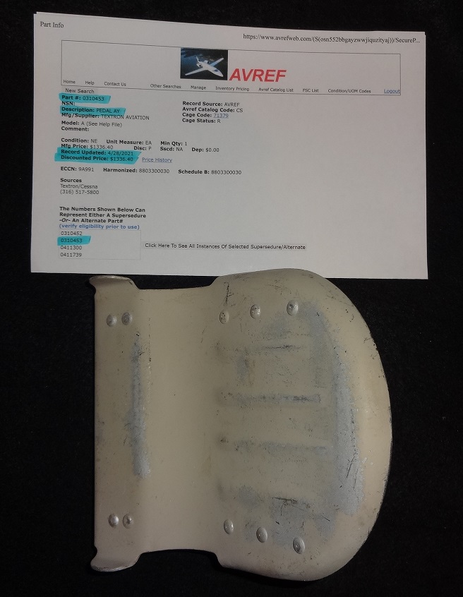 Rudder Pedal Assy. PN#0310453 for Misc Aircraft